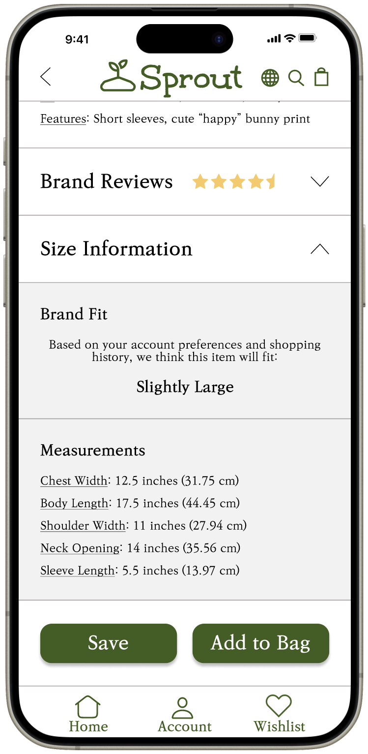 Replaced generic size information with a personalized recommendation and additional measurements.