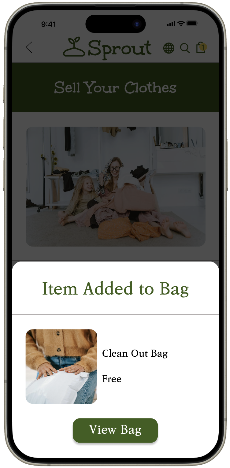 Users want a more obvious confirmation when a Clean Out Bag is added to their cart after requesting one.